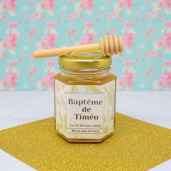 Ces pots de miel peuvent être personnalisés avec le nom du baptisé, la date du baptême ou un message de remerciement pour les invités?